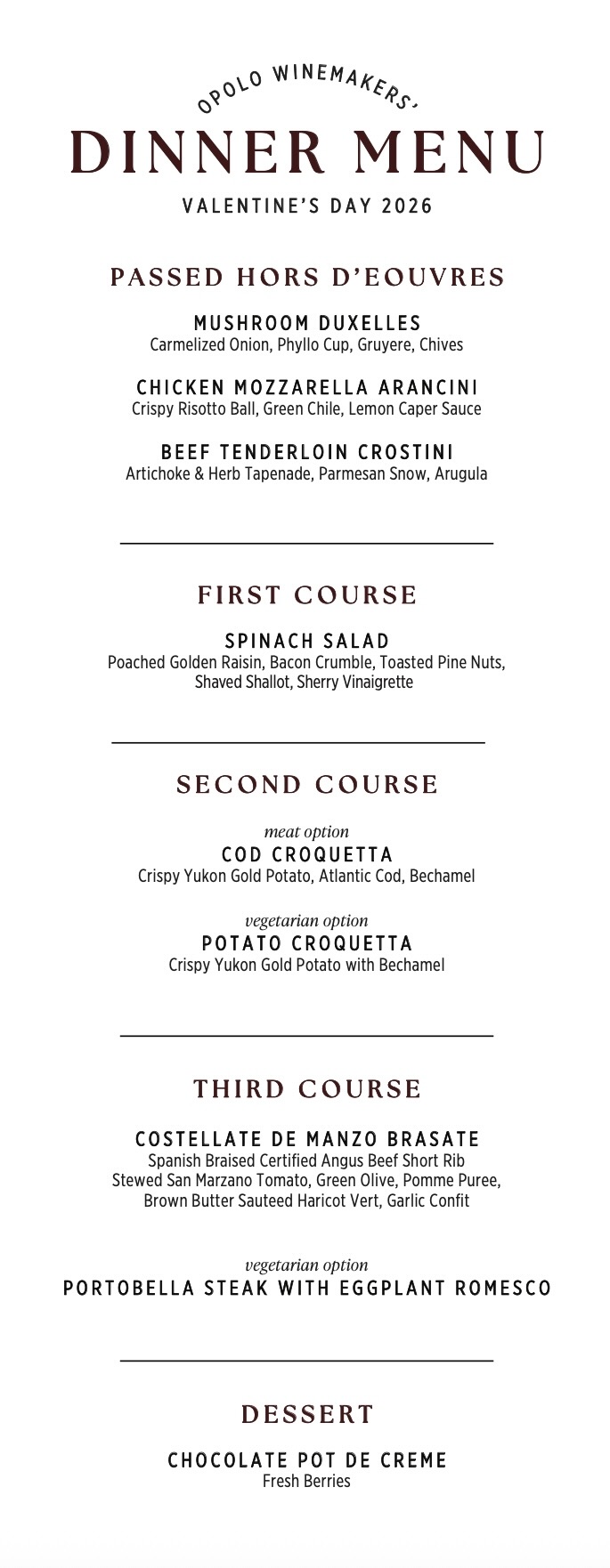 Celebrate love and indulgence with an unforgettable evening at our Barrel Room! Join us for a 5-course Winemaker’s Dinner featuring exquisite cuisine paired with Opolo’s newest wine releases and select library wines. Enjoy good company, live music, and dancing—perfect for a romantic night out.